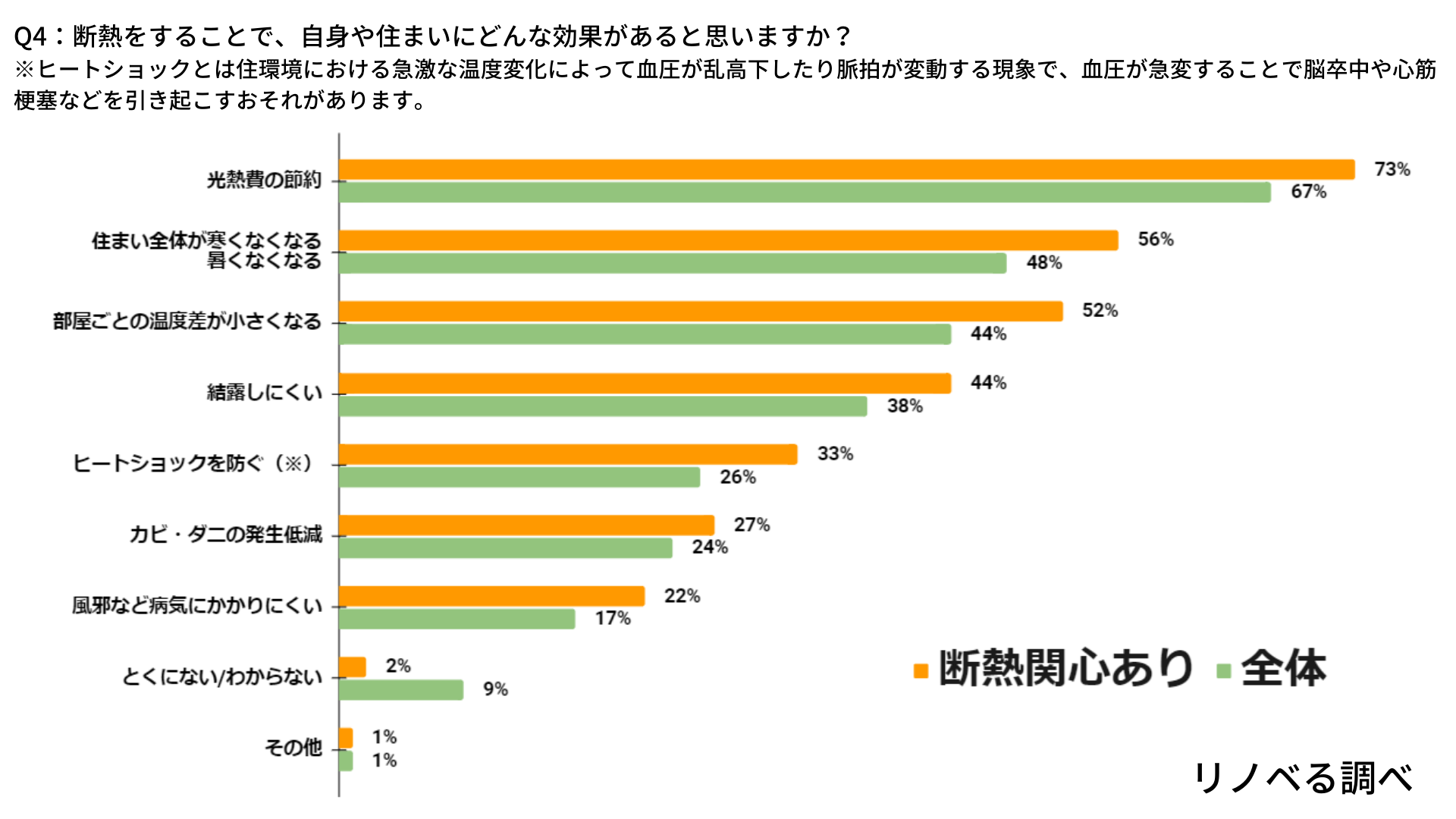 ~ 地球にも、お財布にも、健康にもやさしい断熱。光熱費の節約や快適性は知られているものの、健康被害を防ぐ効果は「断熱に関心がある人」にも知られていないという結果に~