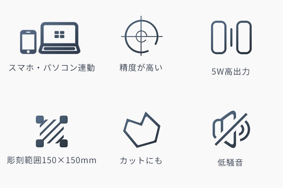 【5W高出力・複雑な組み立て不要・150×150mm広い彫刻範囲】