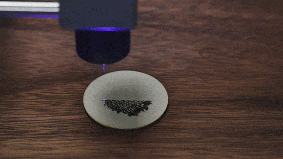 最適な彫刻距離は3〜5cmで、レーザーヘッドを回転させてピントを調整でき、焦点が小さいほど彫刻精度と彫刻効果が高いです。