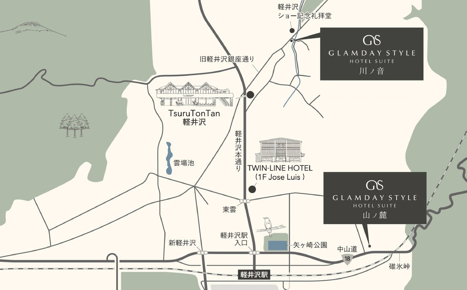 所在地:〒389-0102 長野県北佐久郡軽井沢町大字軽井沢字南祝神62-3