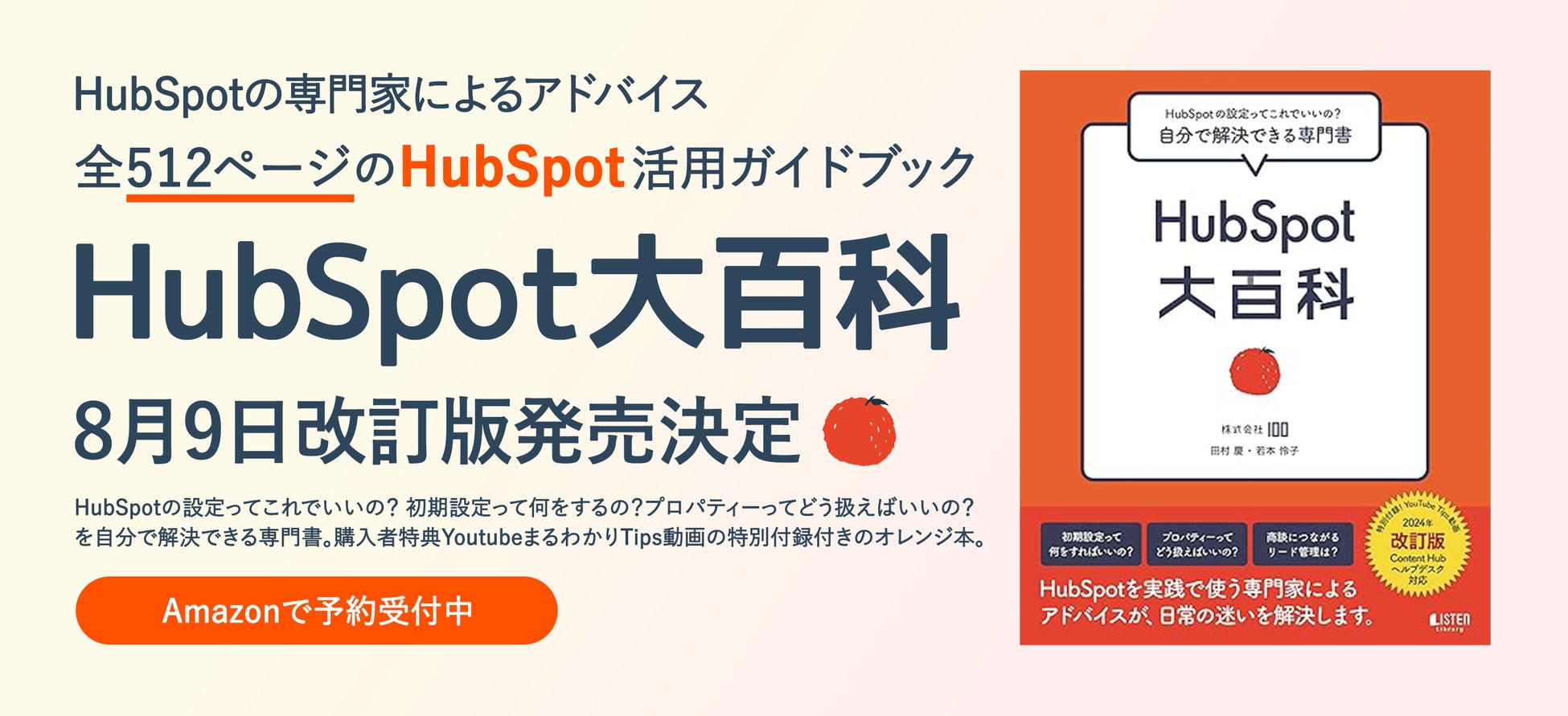 HubSpot Smart CRM™の導入と運用支援サービスを通じてRevOpsソリューションを提供する株式会社100(ハンドレッド、本社:東京都世田谷区、代表取締役:田村 慶)は、HubSpotに関する疑問をユーザーが自分が解決できる専門書『HubSpot大百科 [改訂版]』を2024年8月9日に販売開始いたします。