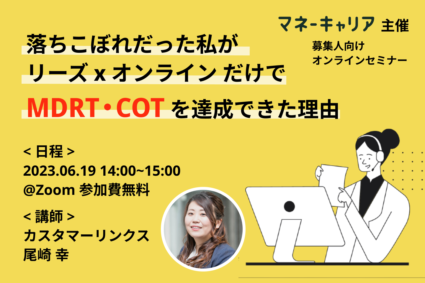 【6/19(月)】募集人向け無料オンラインセミナー「落ちこぼれだった私がリーズ×オンラインだけでMDRT・COTを達成できた理由」実施のお知らせ
