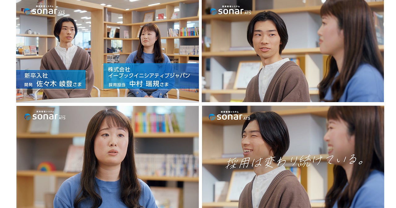 「新卒入社3年以内離職率が0%に。」採用管理システムsonar ATS、イーブックイニシアティブジャパンの採用担当者と新入社員が出演するテレビCM放送開始