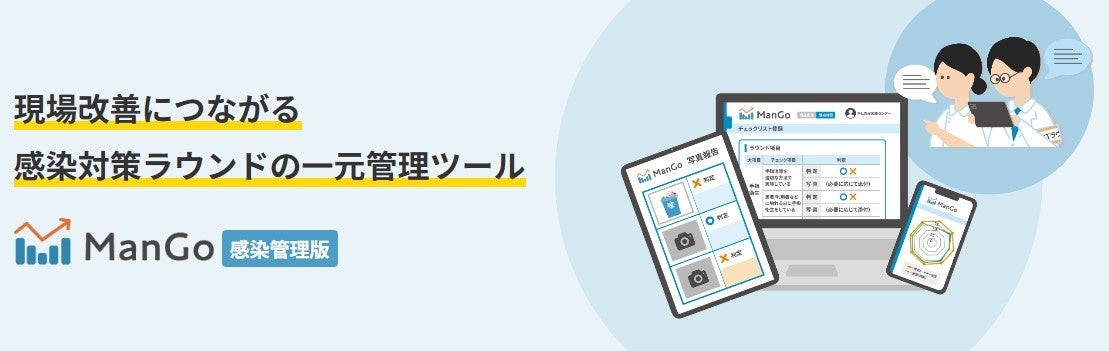 「ManGo(マンゴー)感染管理版」は、医療施設における感染対策ラウンド業務を一元管理するクラウド型システムです。