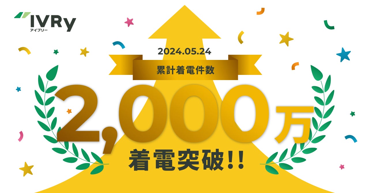 IVRyを利用する事業者様は日々増加し、この度累計着電数2,000万件の大きな節目を迎えることができました。これもひとえに、ご愛顧いただいている皆様のおかげと深く感謝しております。