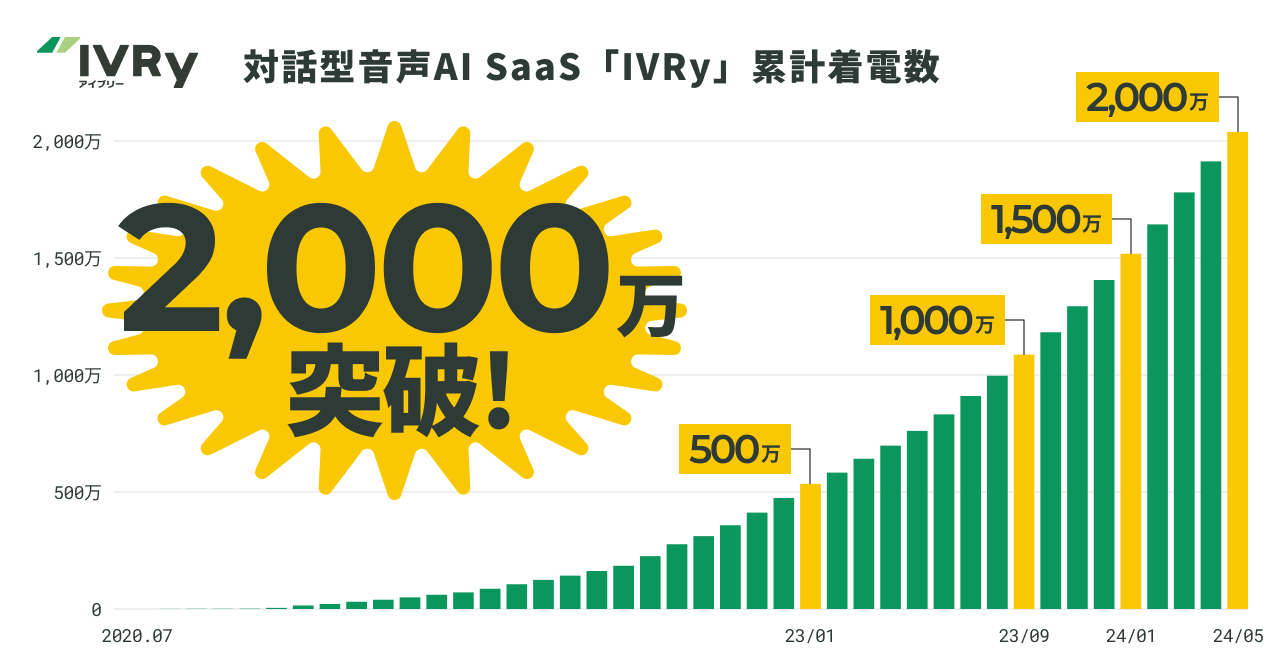 対話型音声AI SaaSのIVRy(アイブリー)、累計着電数2,000万件を突破 〜電話応答工数の総削減時間は166万時間超に〜