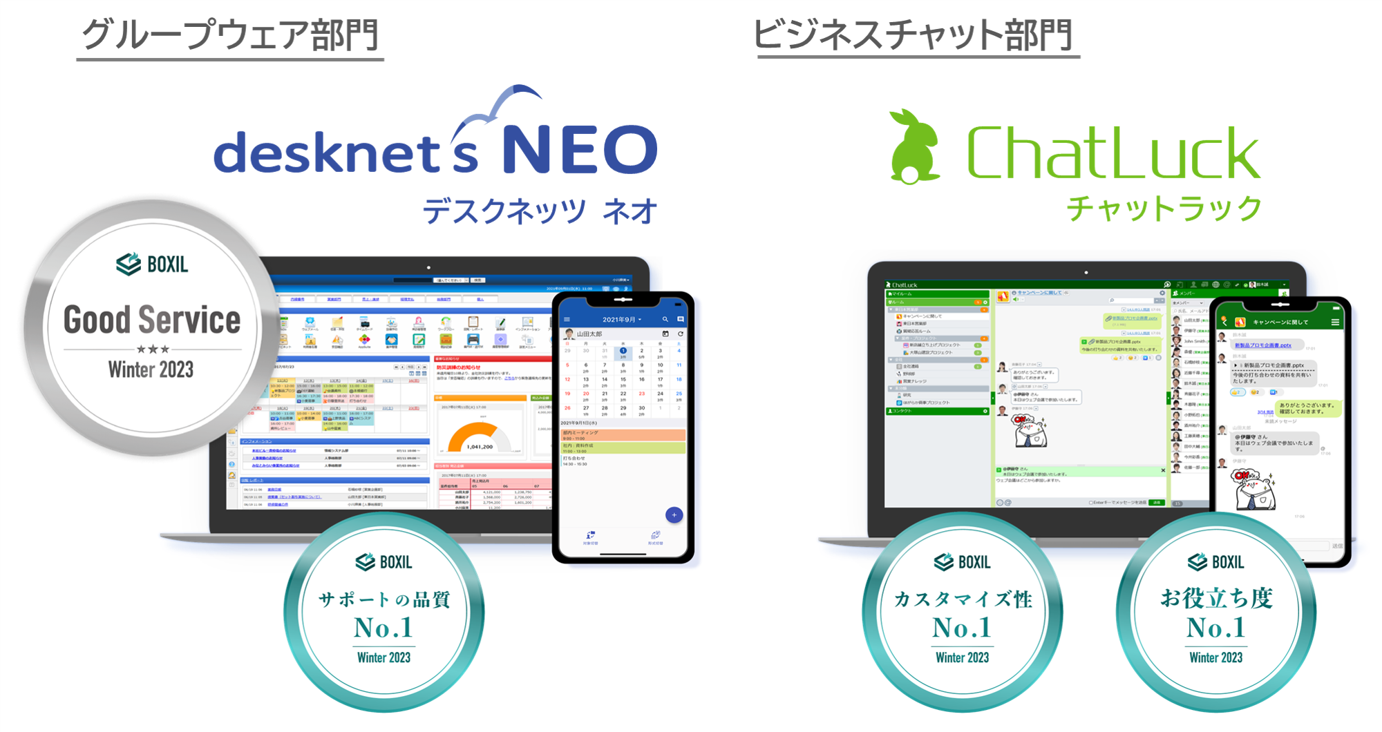 ネオジャパン、グループウェア『desknet's NEO』・ビジネスチャット『ChatLuck』が「BOXIL SaaS AWARD Winter 2023」にてそれぞれの部門で受賞