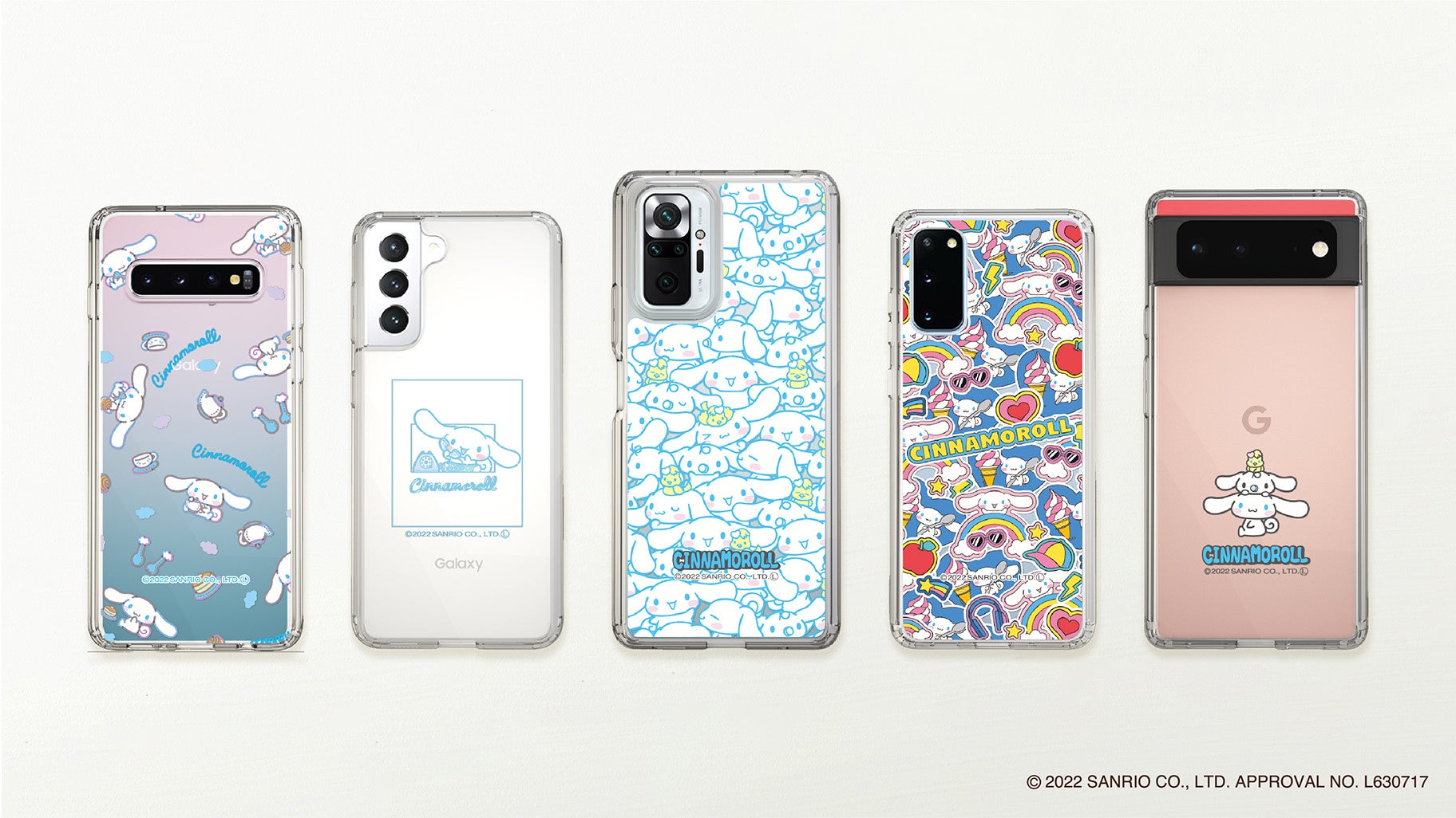 今回は「シナモロール」の5種類のデザインをiPhone/Androidを含めた50機種対応で展開します