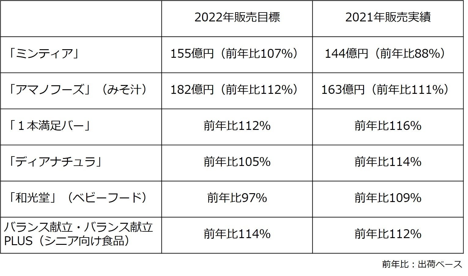 一方、健康志向の高まりや巣ごもり需要を捉えた商品展開により「アマノフーズ」「1本満足バー」「ディアナチュラ」などは前年を大きく上回り、多様化するライフスタイルに対応しました。「アマノフーズ」(みそ汁)は、自宅での食事機会の増加や備蓄食としてのニーズも高まり年間販売金額は163億円(前年比111%)を達成しました。「1本満足バー」はプロテインシリーズが牽引し前年比116%、「ディアナチュラ」はセルフケア意識の高まりによりビタミン関連商品やプロテイン商品「デイアナチュラ アクティブ」シリーズが好調で前年比114%となりました。