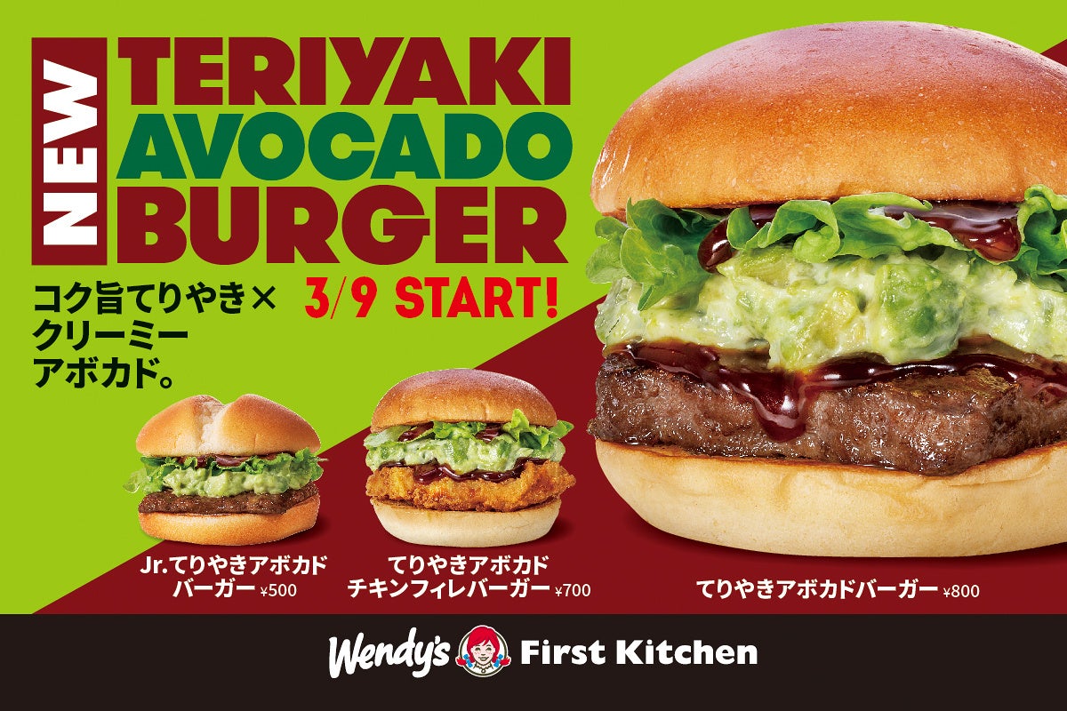 春の定番てりやき×たっぷりアボカドでクリーミーな味わいを ウェンディーズに「てりやきアボカドバーガー」 など3商品登場!3/9(木)よりファーストキッチンと共にてりやき商品を同時展開!