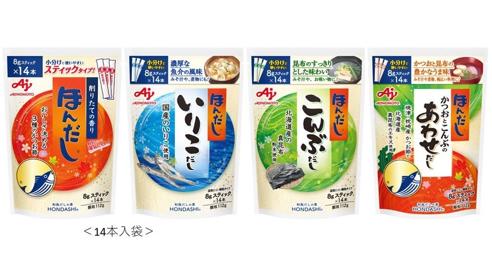 「ほんだし®」<8gスティック14本入袋>・<8gスティック26本入袋>:112g・208g