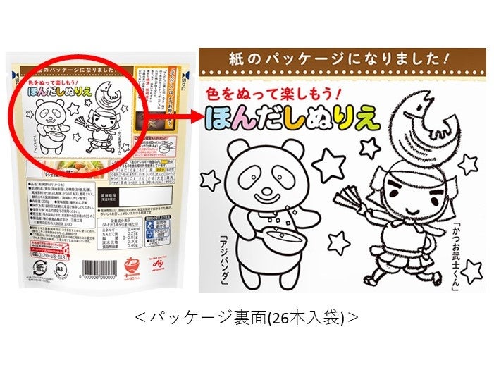 また、紙ならではの特長を生かしてパッケージ裏面に今回新たに“ぬりえ”(全6パターン)を追加し、ご家庭でお子様に楽しんでいただけるようなデザインに変更しています(下図参照)。