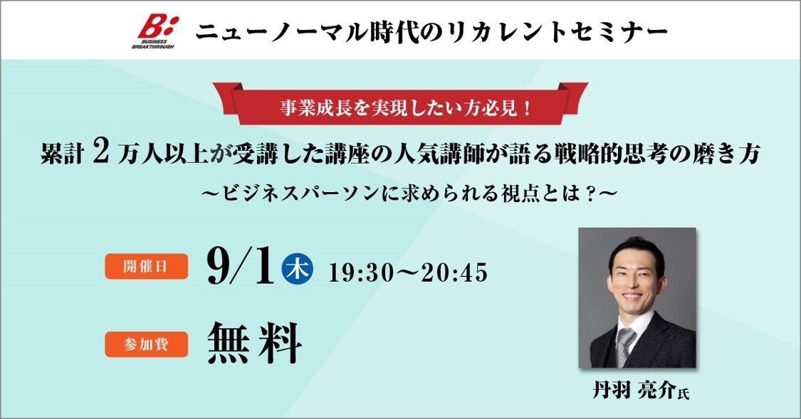BBT『ニューノーマル時代のリカレントセミナー』 事業成長を実現したい方必見!累計2万人以上が受講した講座の人気講師が語る戦略的思考の磨き方~ビジネスパーソンに求められる視点とは?~開催