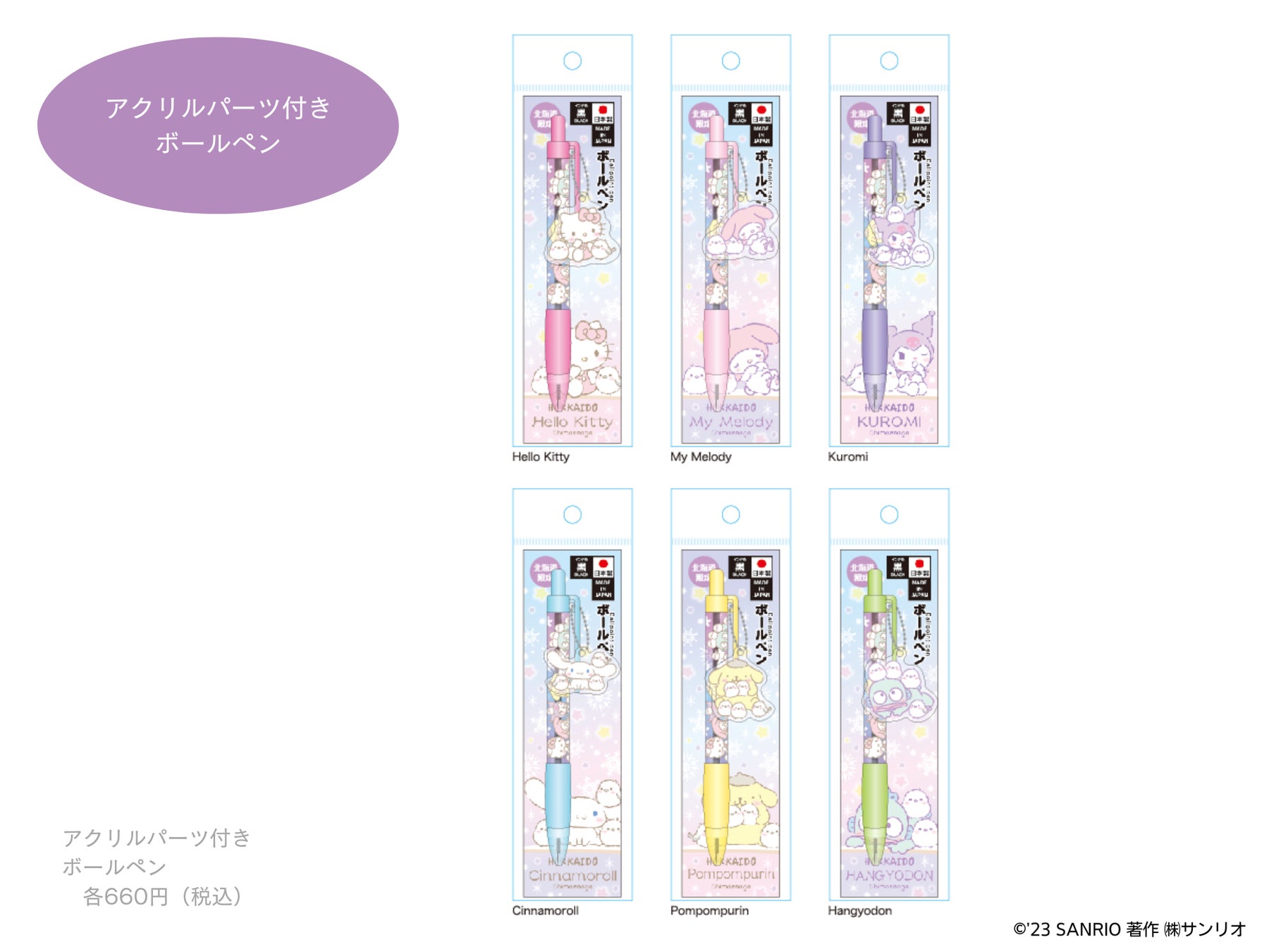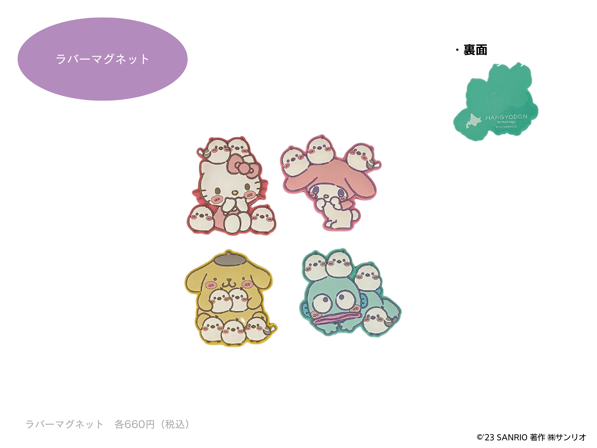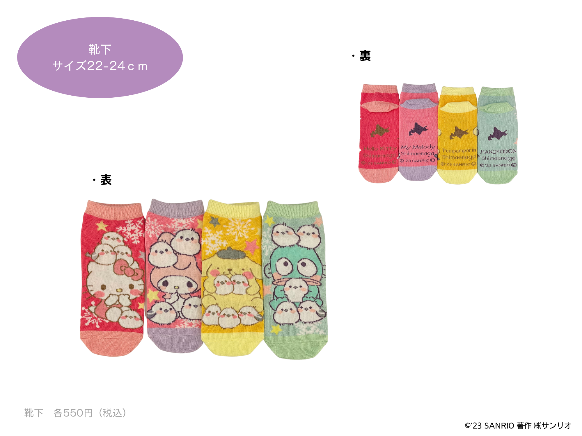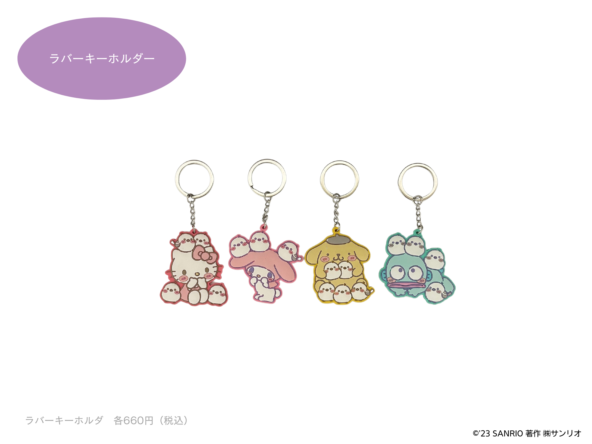 昨年発売したシナモロール、クロミのシマエナガとのコラボグッズが大変ご好評頂き、第二弾の今回はハローキティ、マイメロディ、ポムポムプリン、ハンギョドンが新たに登場致します。
