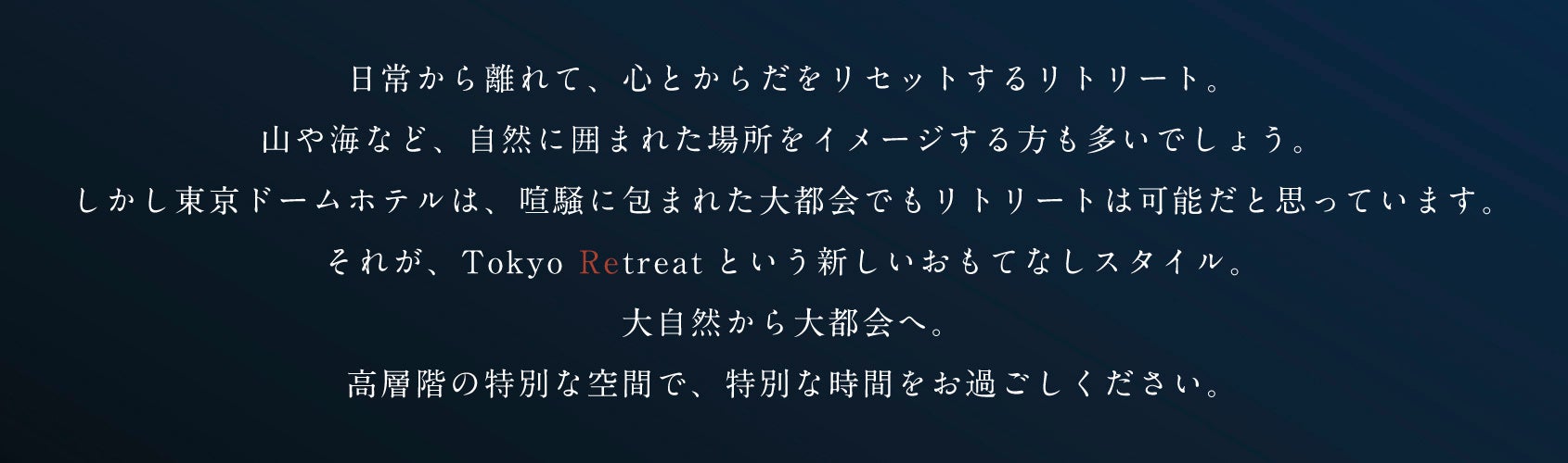 関連情報URL:https://www.tokyodome-hotels.co.jp/tokyoretreat/
