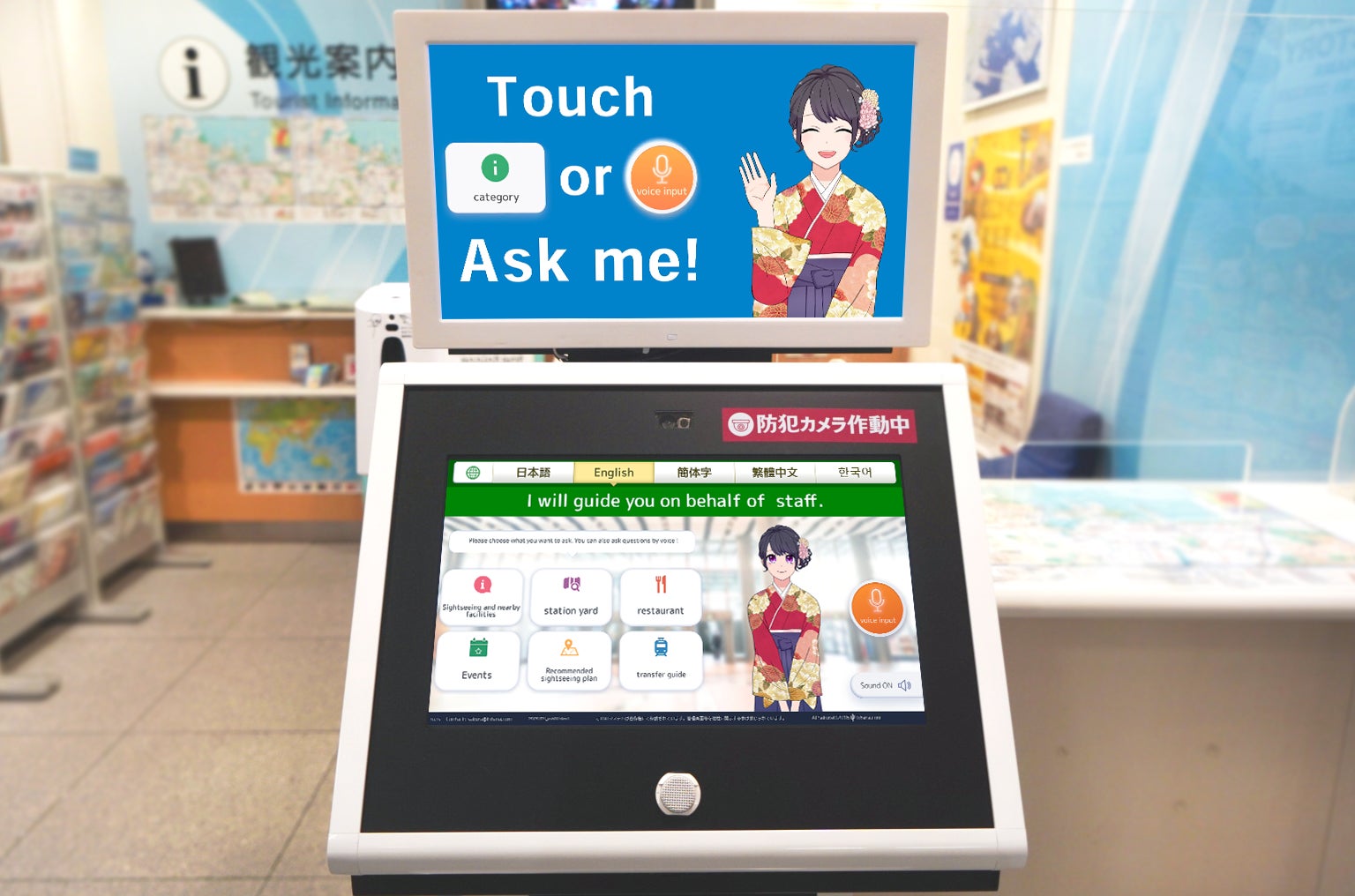 AIさくらさんDXシリーズ「アバター接客さくらさん」が新横浜駅観光案内所に導入され、多言語対応で訪日外国人旅行者の皆さまをご案内します。
