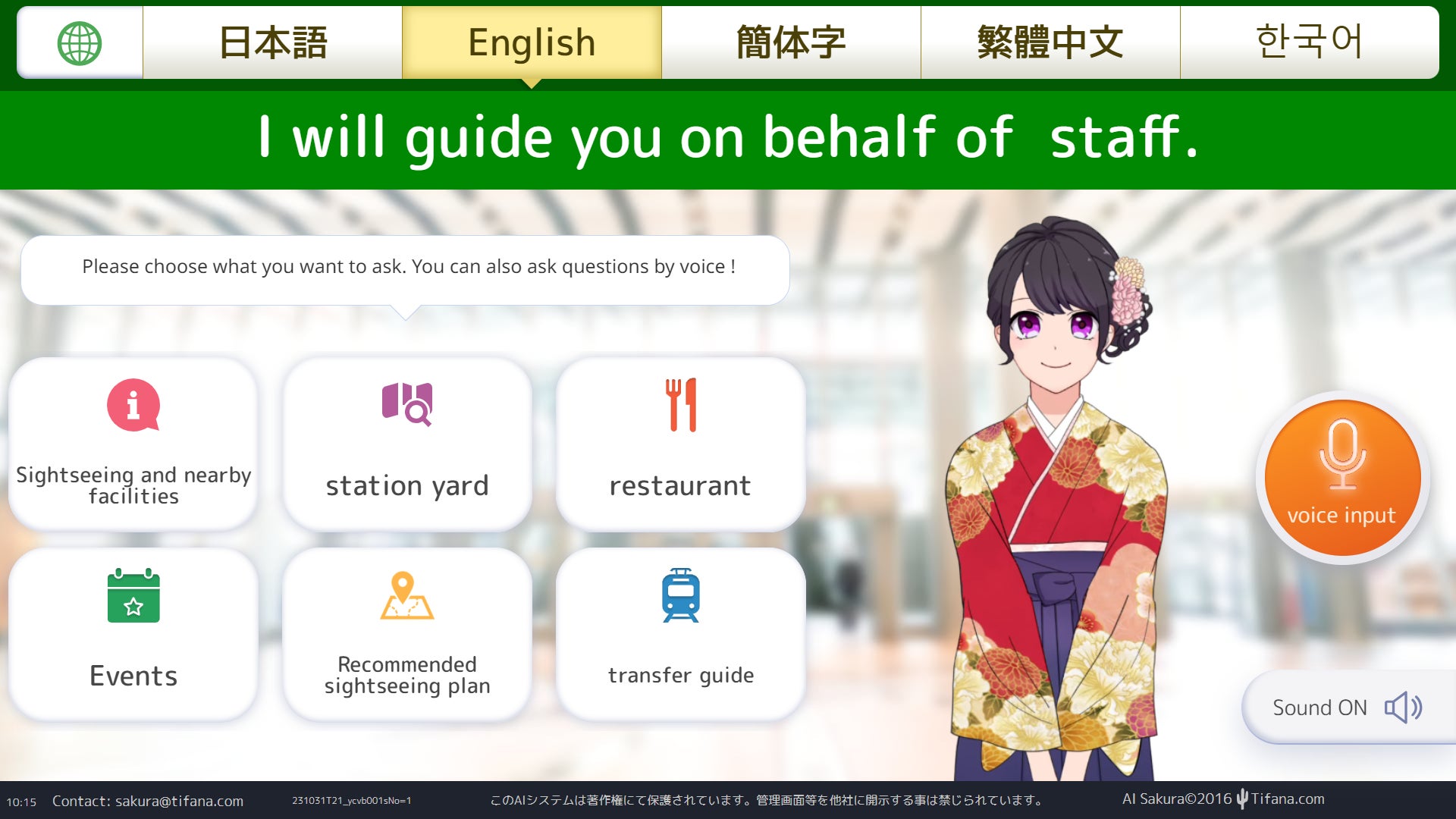 ユーザーは、「AIさくらさん」との音声での対話やタッチパネルでの選択により、観光スポットを検索したり、案内を受けたりすることができます。