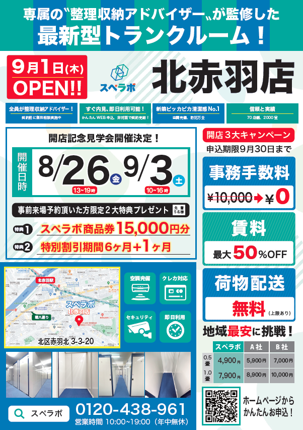 オープンに合わせ8月26日(金)、9月3日(土)に見学会を実施しますので、ぜひ【スペラボ・北赤羽店】にお越しくださいませ。