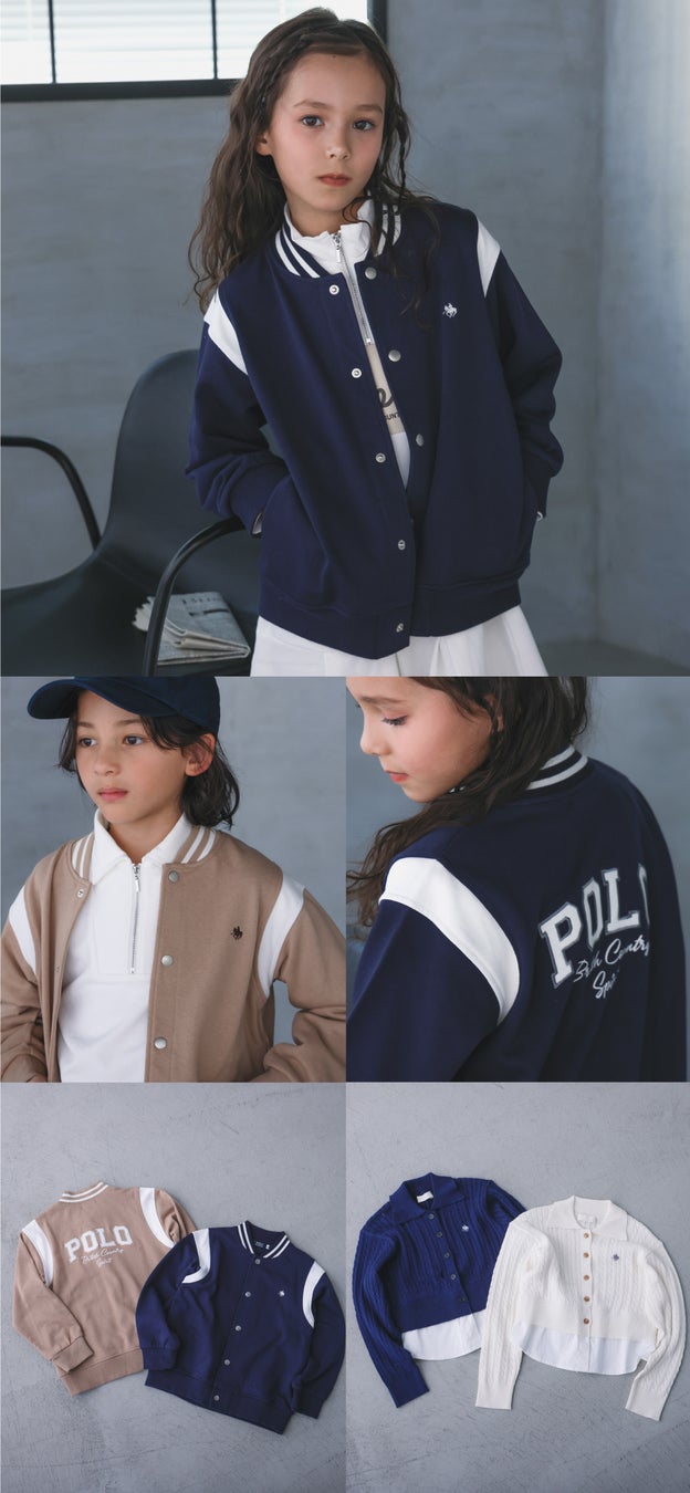 バックロゴと胸元にプレイヤー刺繍をあしらったスタジャンは、脇の切り替えラインがアクセントに。カーディガンは、温かみのあるアラン編みと襟・シャツを重ねたような裾デザインがポイント。春のお出かけや通学にぴったりのライトアウターです♪