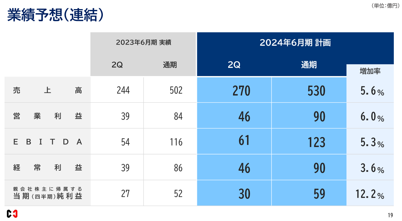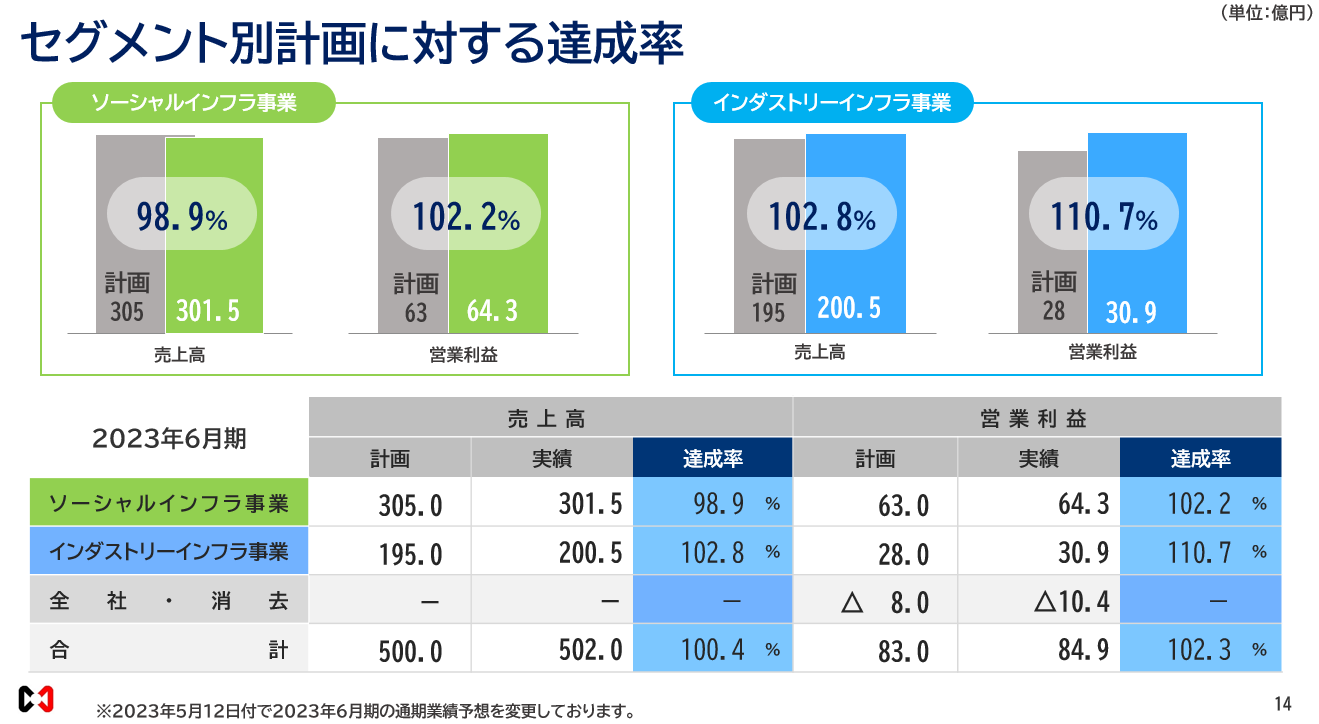 次期の連結業績見通しにつきましては、売上高53,000百万円、営業利益9,000百万円、経常利益9,000百万円、親会社株主に帰属する当期純利益5,900百万円を予想しております。また、セグメントごとの売上高は、ソーシャルインフラ事業30,500百万円、インダストリーインフラ事業22,500百万円、営業利益は、ソーシャルインフラ事業6,400百万円、インダストリーインフラ事業3,500百万円を予想しております。