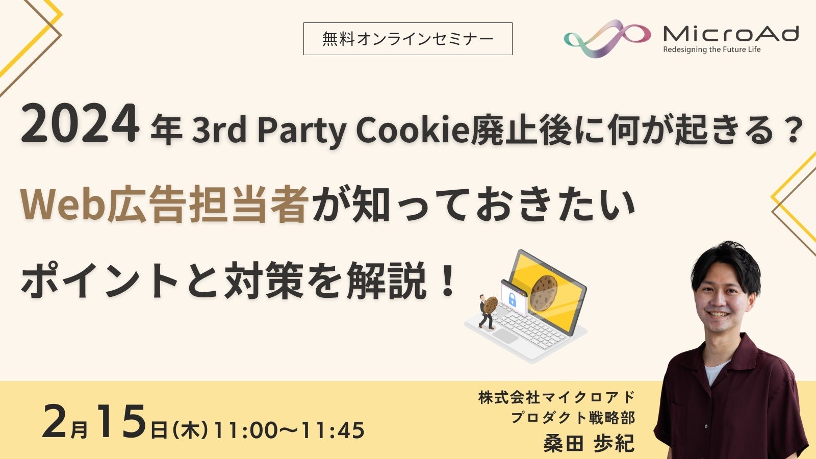 【2/15開催:Web広告担当者向けセミナー】2024年 3rd Party Cookie廃止後に何が起きる?Web広告担当者が知っておきたいポイントと対策を解説!