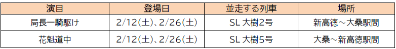 本年は鬼怒川温泉エリアで同期間中に実施している「鬼怒川温泉 鬼まつり」と連携し、SL大樹と魅力あふれる地元地域の観光資源とのさらなる相乗効果で冬季の日光・鬼怒川エリアの話題創出と誘客に努めてまいります。