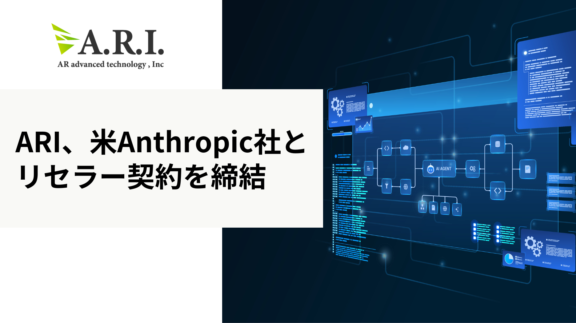 ARアドバンストテクノロジ株式会社(本社:東京都渋谷区、代表取締役社長:武内 寿憲、以下ARI)は、米国Anthropic, PBC(以下Anthropic)が提供する、アマゾンウェブサービス(以下AWS)を通じた「Anthropic Authorized Reseller Program for Amazon Bedrock」を締結したことをお知らせいたします。