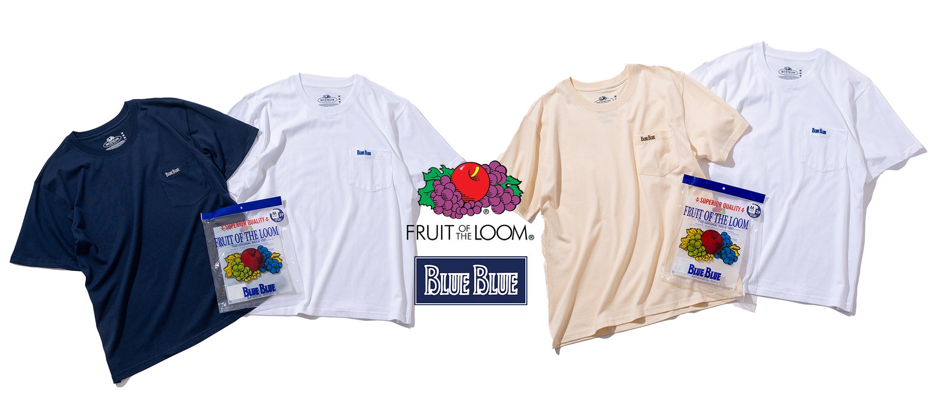 【FRUIT OF THE LOOM × BLUE BLUE】コラボレーション2パックTシャツをリニューアル。4月17日(金)より発売