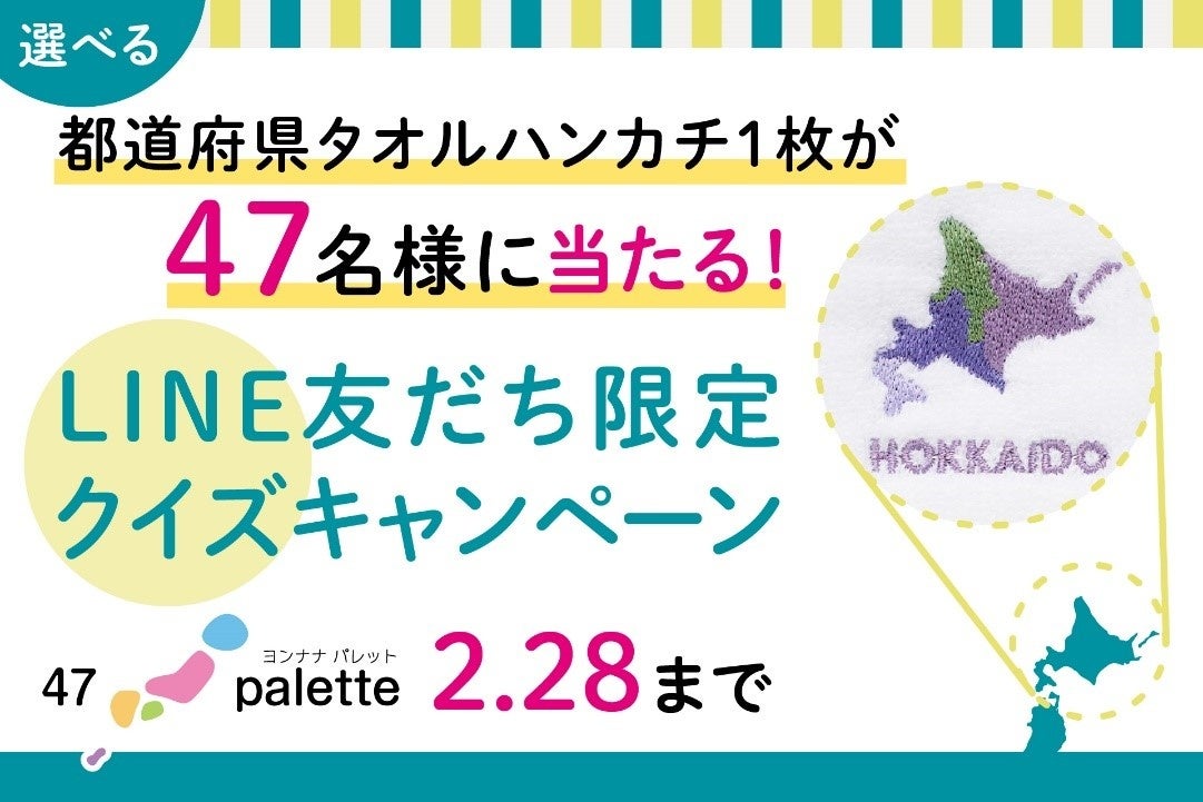 ■ LINE友だち限定!タオルハンカチ「47palette」が47名様に当たる、クイズキャンペーンを開催