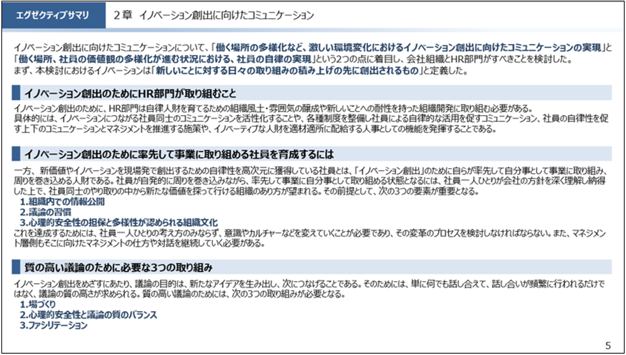 「働く場所の多様化など、激しい環境変化におけるイノベーション創出に向けたコミュニケーションの実現」
