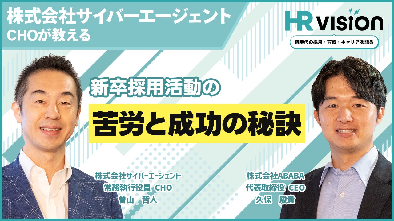 株式会社ABABA(本社:東京都渋谷区、代表取締役:久保駿貴・中井達也)は、オウンドメディア「あばば大学」にて、当社代表 久保と人材領域やAI領域の有識者との対談を通して人材領域の未来について考える新企画『HR VISION』をスタートいたしました。