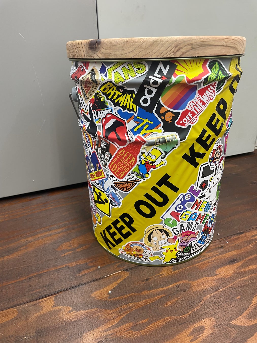 「いす缶」はその用途の幅広さが魅力です。オフィスや家庭では椅子や収納ボックスとして、毛布やおもちゃを収納したり、座れるゴミ箱としても機能します。また、アウトドアシーンでは薪やキャンプ道具の収納・持ち運びに便利なアイテムとしてお使いいただけます。さらに、プランターとして植物を育てたり、ステッカーを貼ってカスタマイズすることでインテリアとしても活躍します。