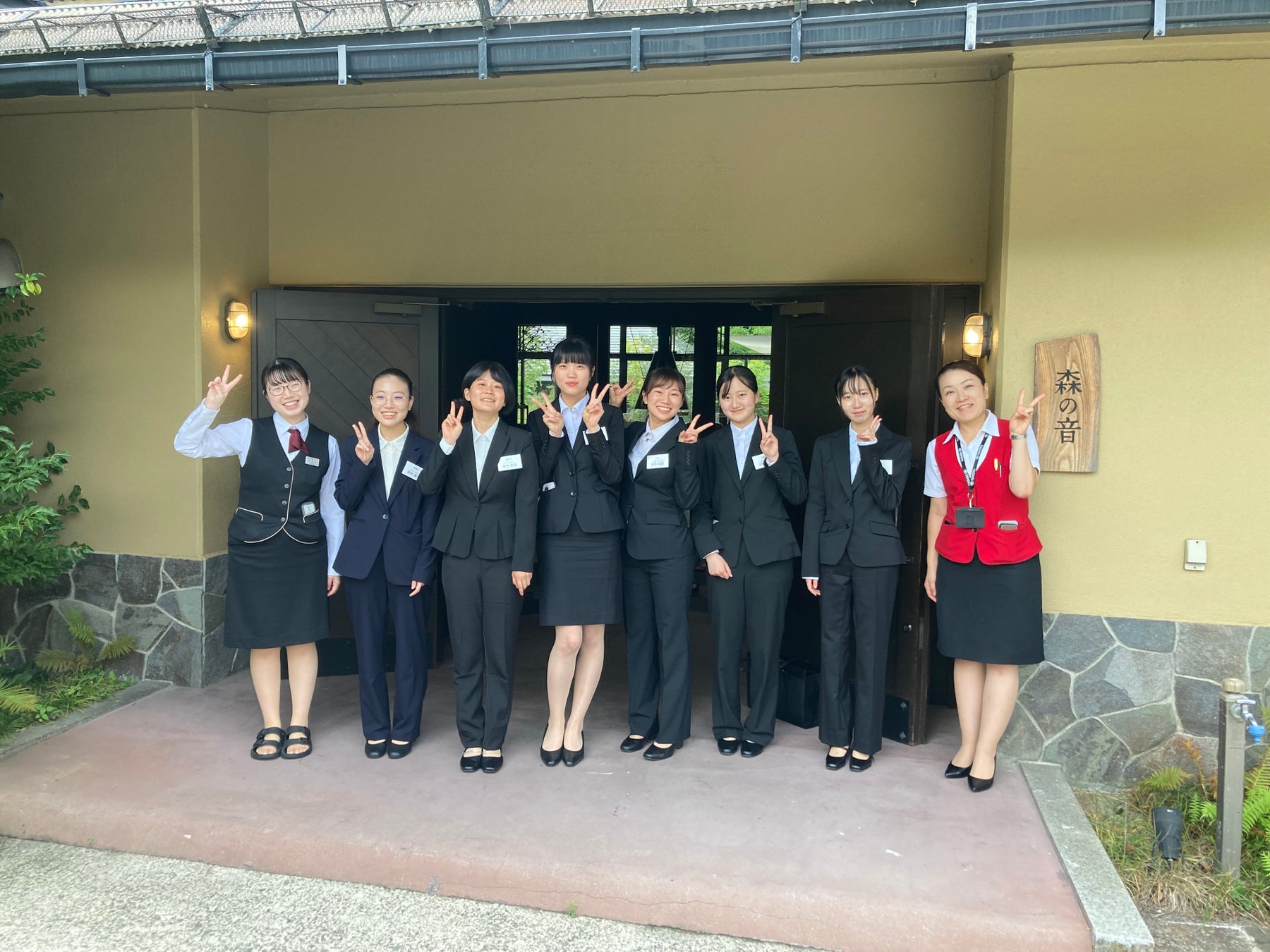 古窯グループの老舗旅館「日本の宿古窯」での就業体験では、主に接客部スタッフの仕事を体験。観光業界・旅館業の説明に加え、プロが選ぶ旅館百選TOP10に選ばれ続けるおもてなし(お客様を感動させる接客)に関するレクチャーやお出迎えやお見送りのロールプレイングを行いました。