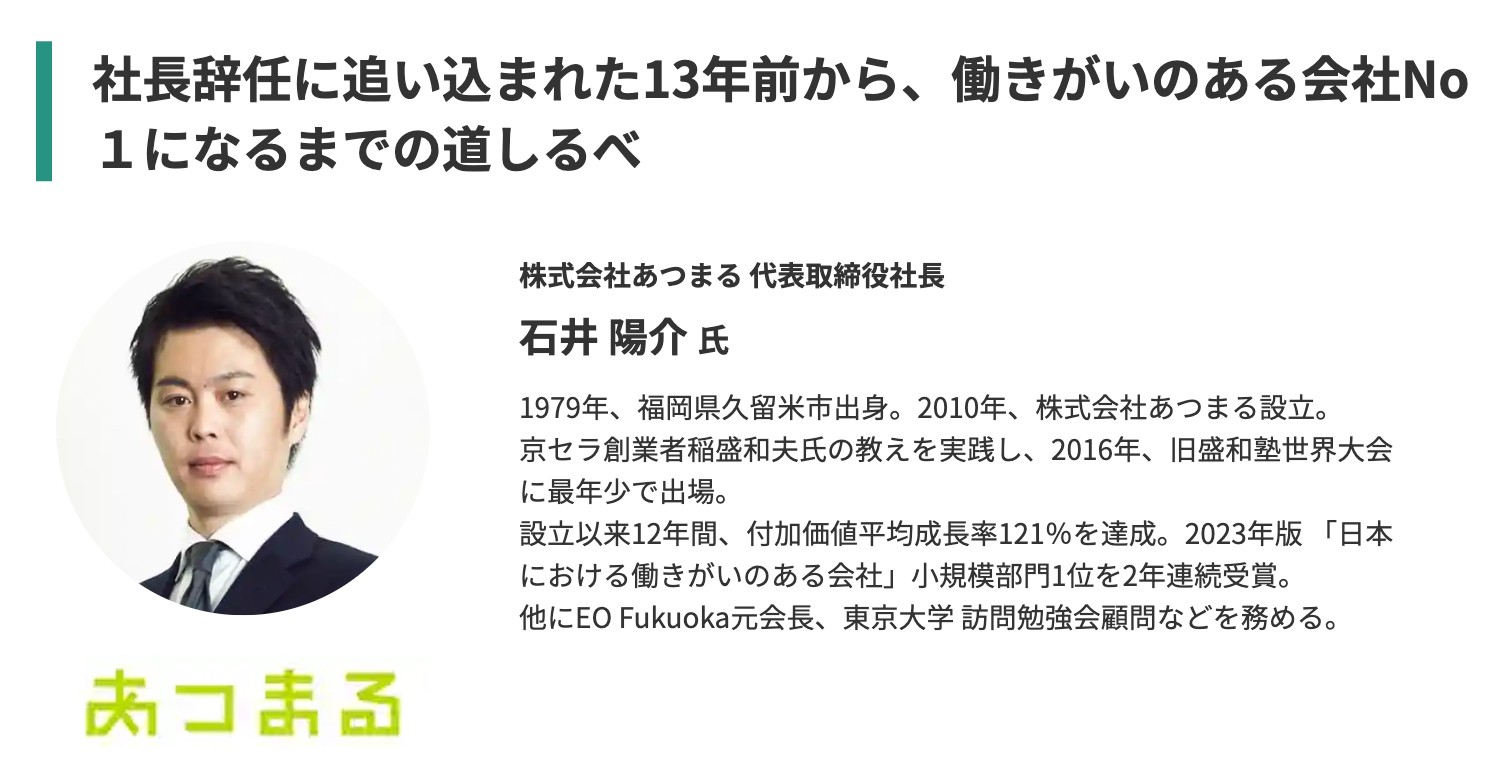 リーダーを育成する教育カンパニーとしても展開し、2023年版 「日本における働きがいのある会社」にて全国1位(小規模部門)を2年連続受賞。ベストカンパニーに5年連続選出。
