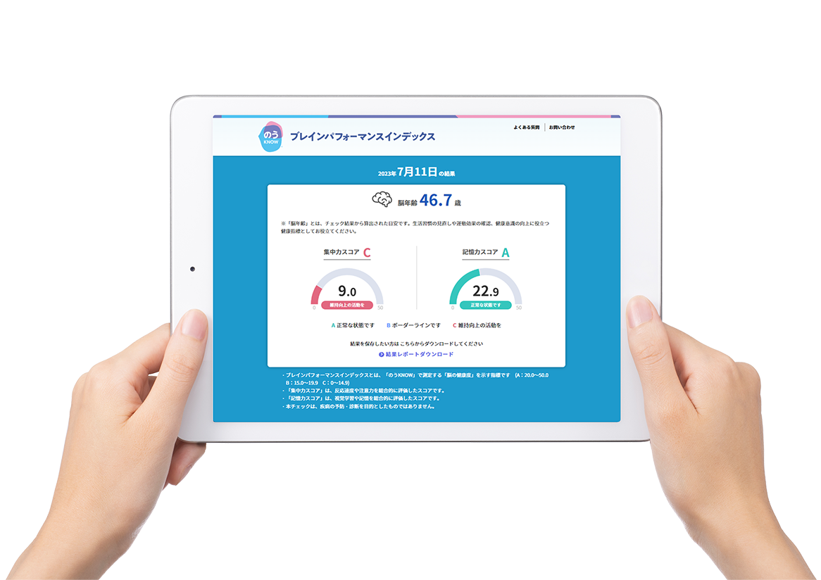 エーザイ株式会社が提供するブレインパフォーマンスのセルフチェックツール