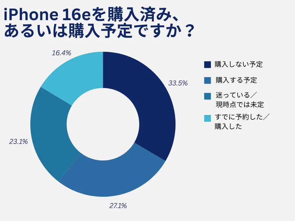 iPhone 16eは、「購入しない予定」が最も多く33.5%を占めた