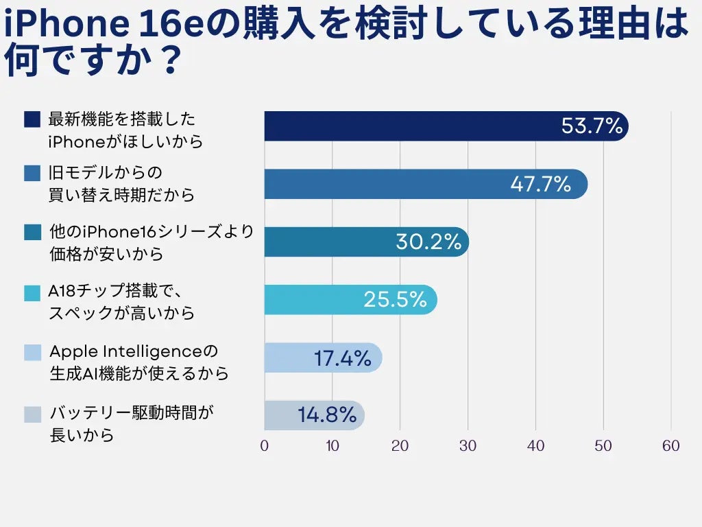 iPhone 16eの購入理由は「最新機能の搭載」が最多で53.7%を占めた