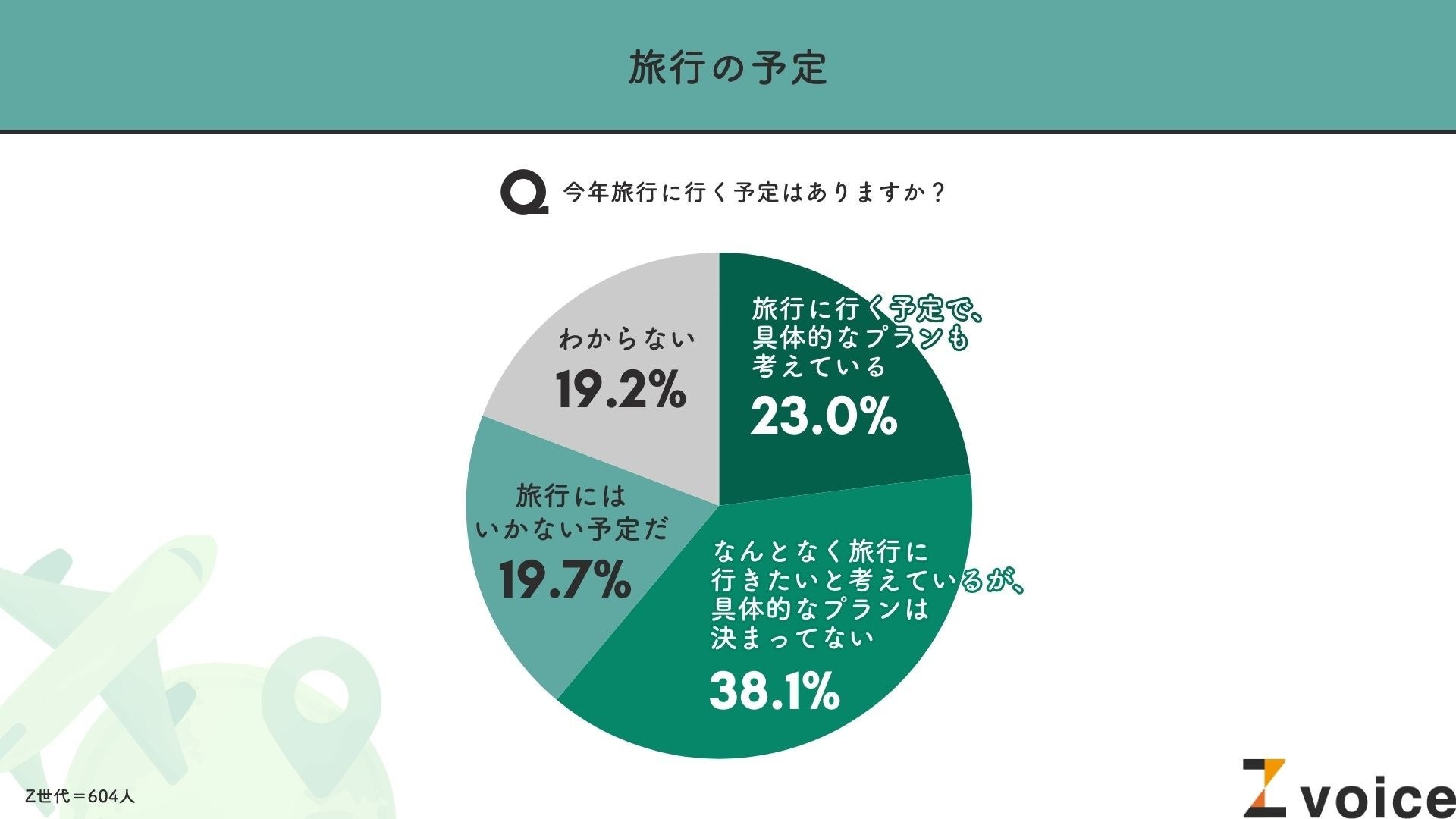 まず、今年の旅行の予定について聞いたところ、Z世代のうち「旅行に行く予定で、具体的なプランも考えている」と答えたのは23.0%。