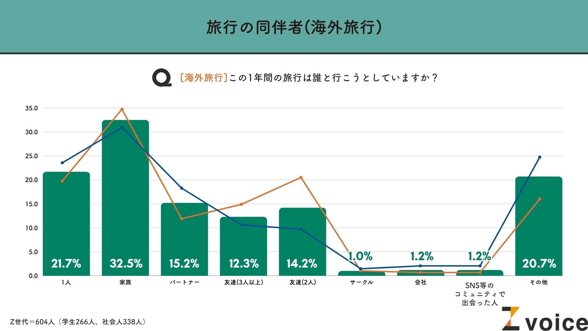 海外旅行に関しても傾向はほぼ同じで、「家族(32.5%)」がもっとも多い結果に。