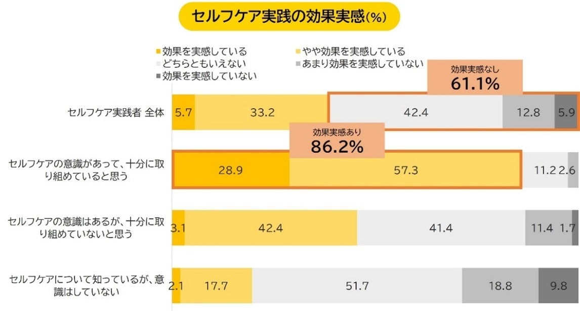 一方、セルフケア意識が高い人ほど効果の実感度が高い傾向も