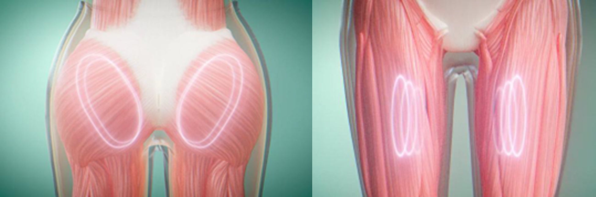 EMSパッドをお尻と内ももに配置することで、骨盤底筋(肛門筋を含む)に前後から効果的にアプローチします。