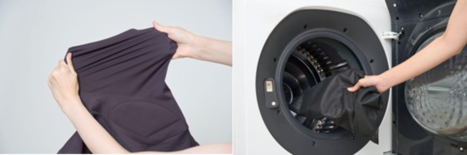 -素材:表地/ナイロン76%・ポリウレタン24%、裏地/ポリエステル・ポリウレタン、コントローラー部&コントローラー取り付け部/ABS樹脂+PC樹脂、電極部/導電性シリコーン、洗濯ネット/ポリエステル