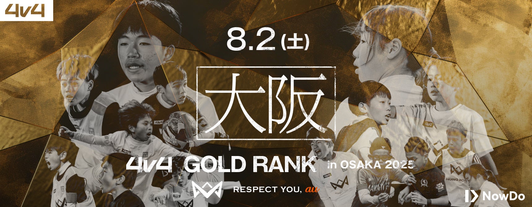 NowDo株式会社(所在地:東京都新宿区、代表取締役社長:本田圭佑)が運営する育成年代向け4人制サッカー大会「4v4」は、ゴールドランク大会「GOLD RANK IN OSAKA」を、2025年8月2日(土)に大阪府吹田市・OFA万博フットボールセンターにて開催いたします。