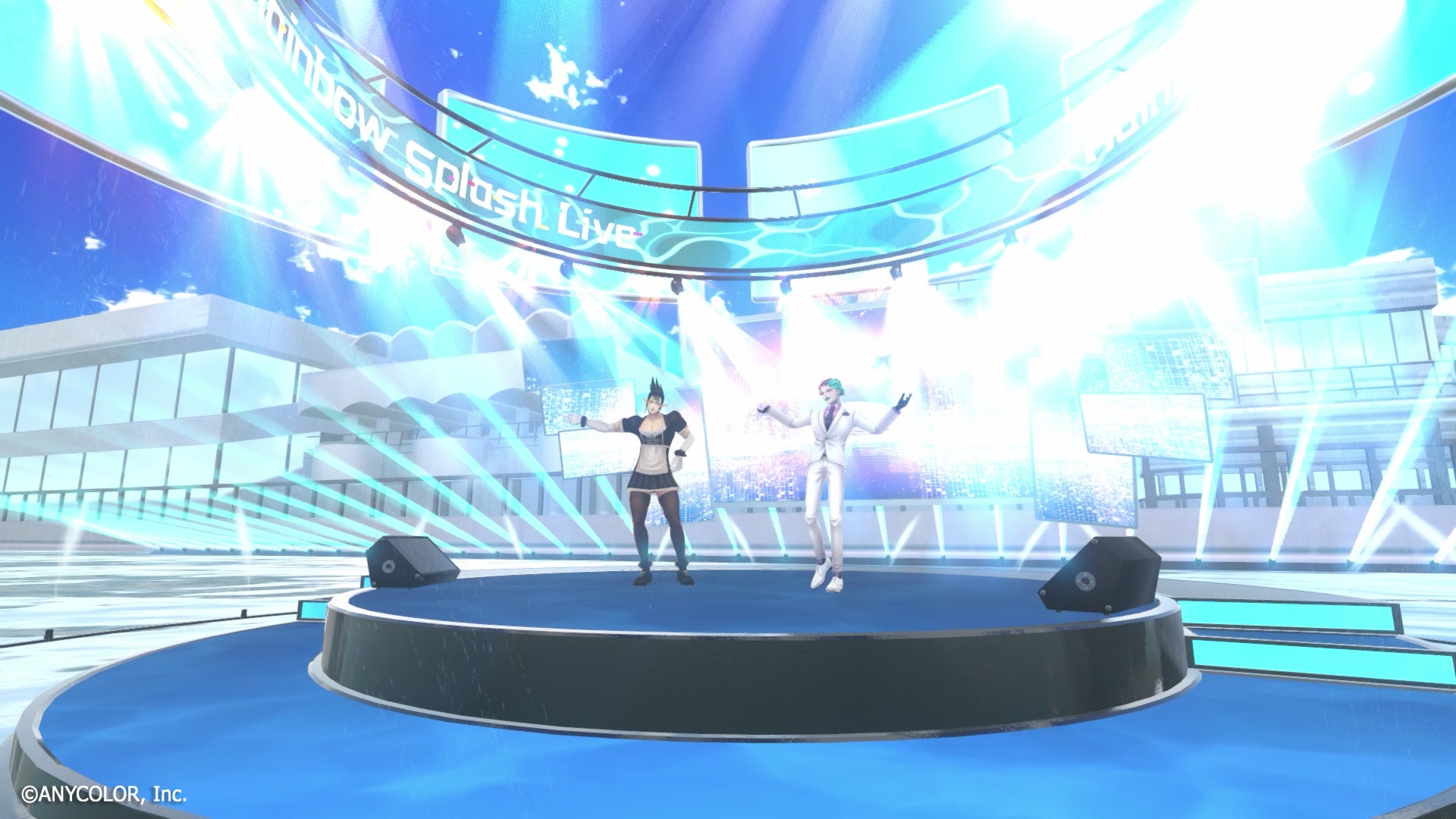 「ジョー・力一」と「花畑チャイカ」が歌う楽曲に合わせ、背面モニターや床面グラフィックの演出や自由度の高いカメラワークにより見ごたえのあるバーチャルライブならではの演出に仕上げました。