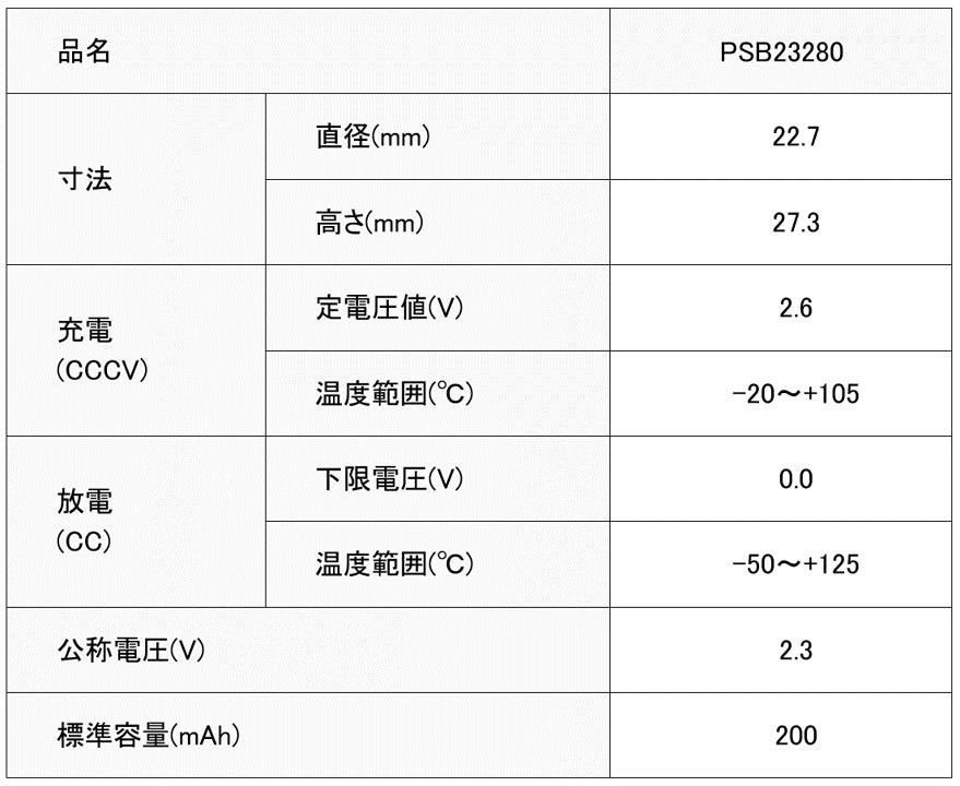 ■円筒形全固体電池(PSB23280)試作品の仕様