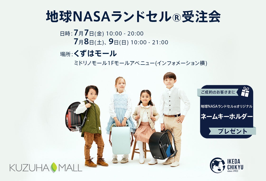 オリジナルランドセル「地球NASAランドセル®」の企画・販売を行う池田地球株式会社(本店:東京都港区:代表取締役 村尾光一)は、7/7(金)~7/9(日)の3日間、くずはモール ミドリノモール1Fモールアベニュー(インフォメーション横)にて「地球NASAランドセル®受注会」を開催いたします。