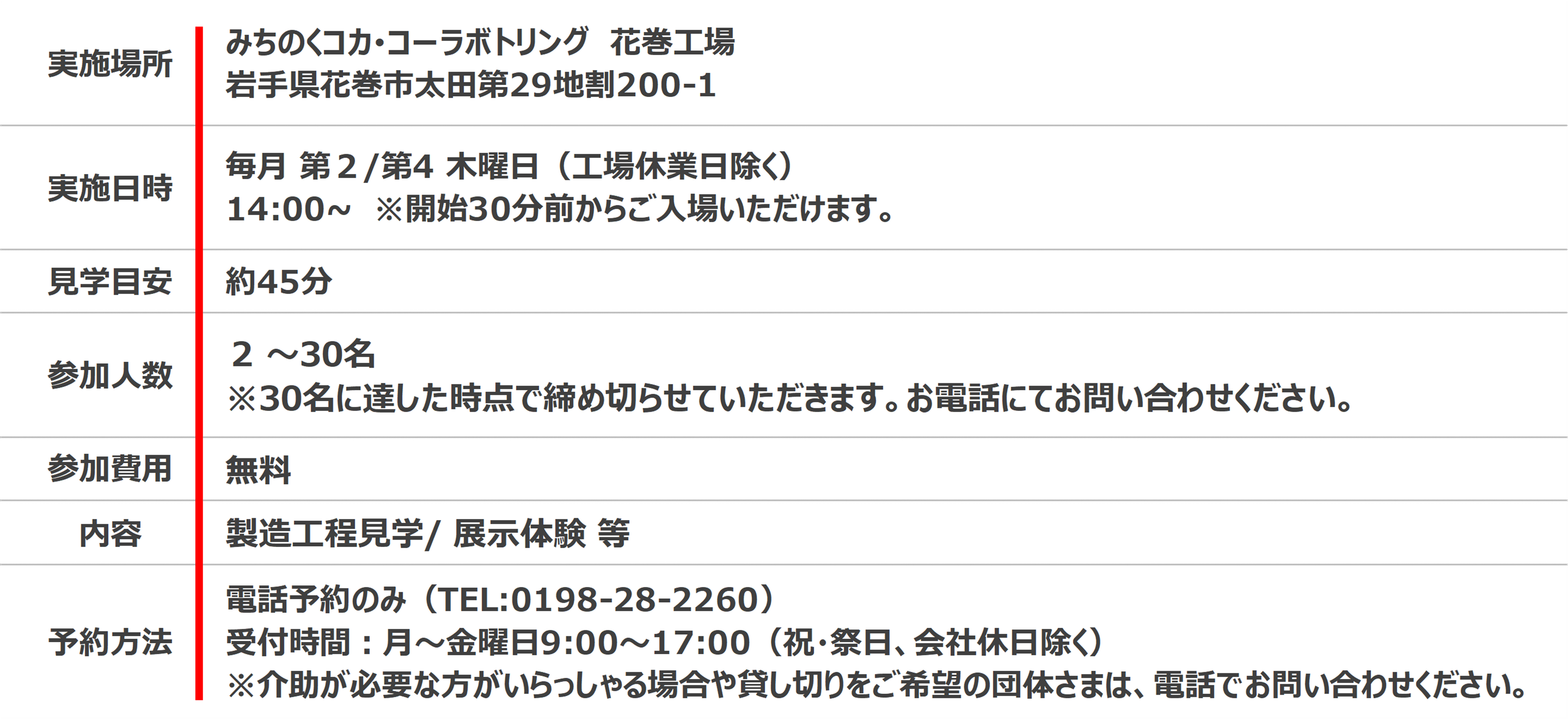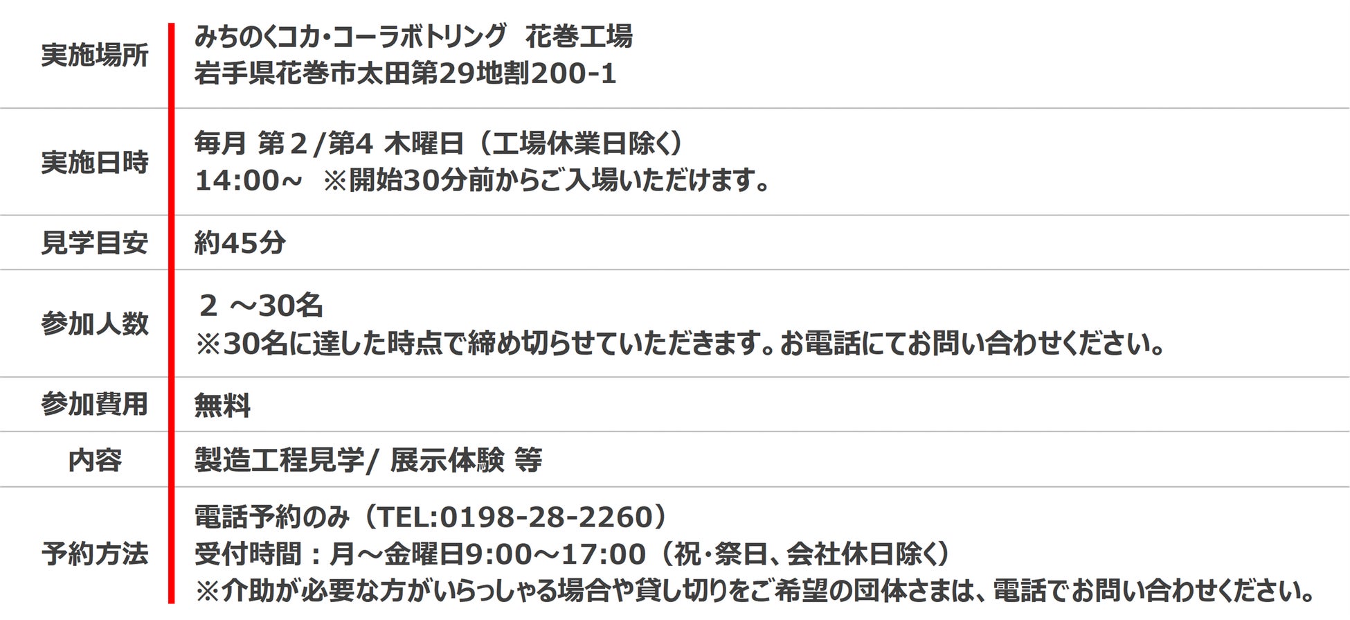 【みちのくコカ・コーラボトリング花巻工場 見学施設について】
