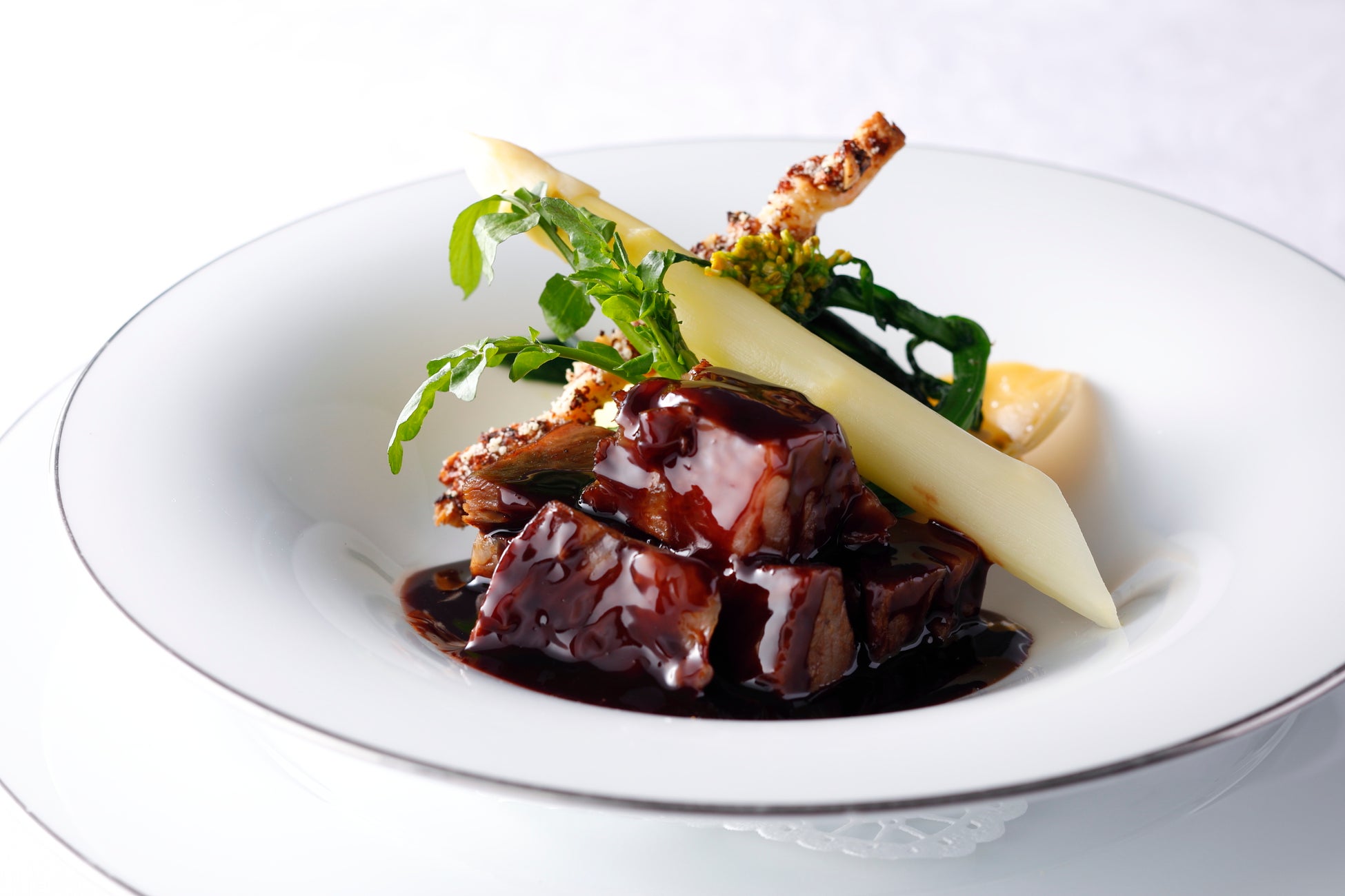 セミドライのプチトマトにチョコレートを合わせたアミューズや、旬のアスパラガスを卵黄、柑橘の香りと一緒に楽しむ前菜をお楽しみいただけます。