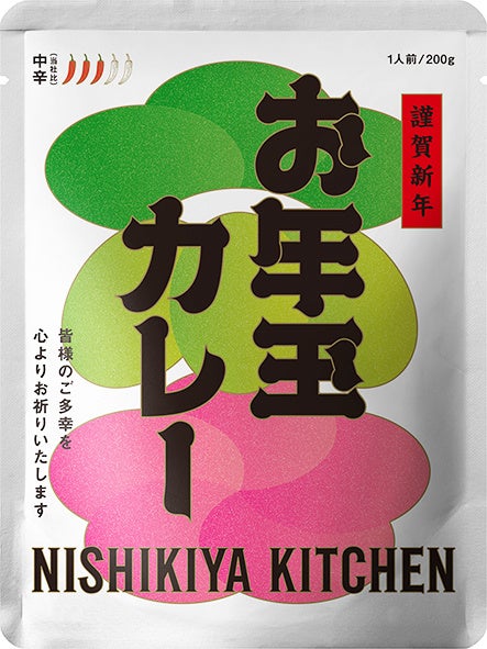 「世界の料理を『カンタン』に。」をコンセプトに掲げ、レトルトカレーを中心に販売するレトルト食品専門店NISHIKIYA KITCHEN(ニシキヤキッチン)(株式会社にしき食品 本社:宮城県岩沼市、代表取締役:菊池洋)は、昨年に引き続き、2024年11月1日(木)に、おそば屋さんのカレーをイメージしてだしをきかせ、鶏肉とシャキシャキのたけのこをたっぷり入れた「お年玉カレー」を数量限定で発売を開始しています。毎年、大安の日に「良い年でありますように」と願いを込めて、地元宮城県岩沼市の宮司様にご祈祷していただいています。今年は2024年10月17日(木)に今年度出荷分をご祈祷していただきました。また、今年はパッケージをリニューアルし松竹梅をイメージしたイラストでかわいく仕上げています。お世話になった方や親戚への年始のご挨拶にもおすすめです。