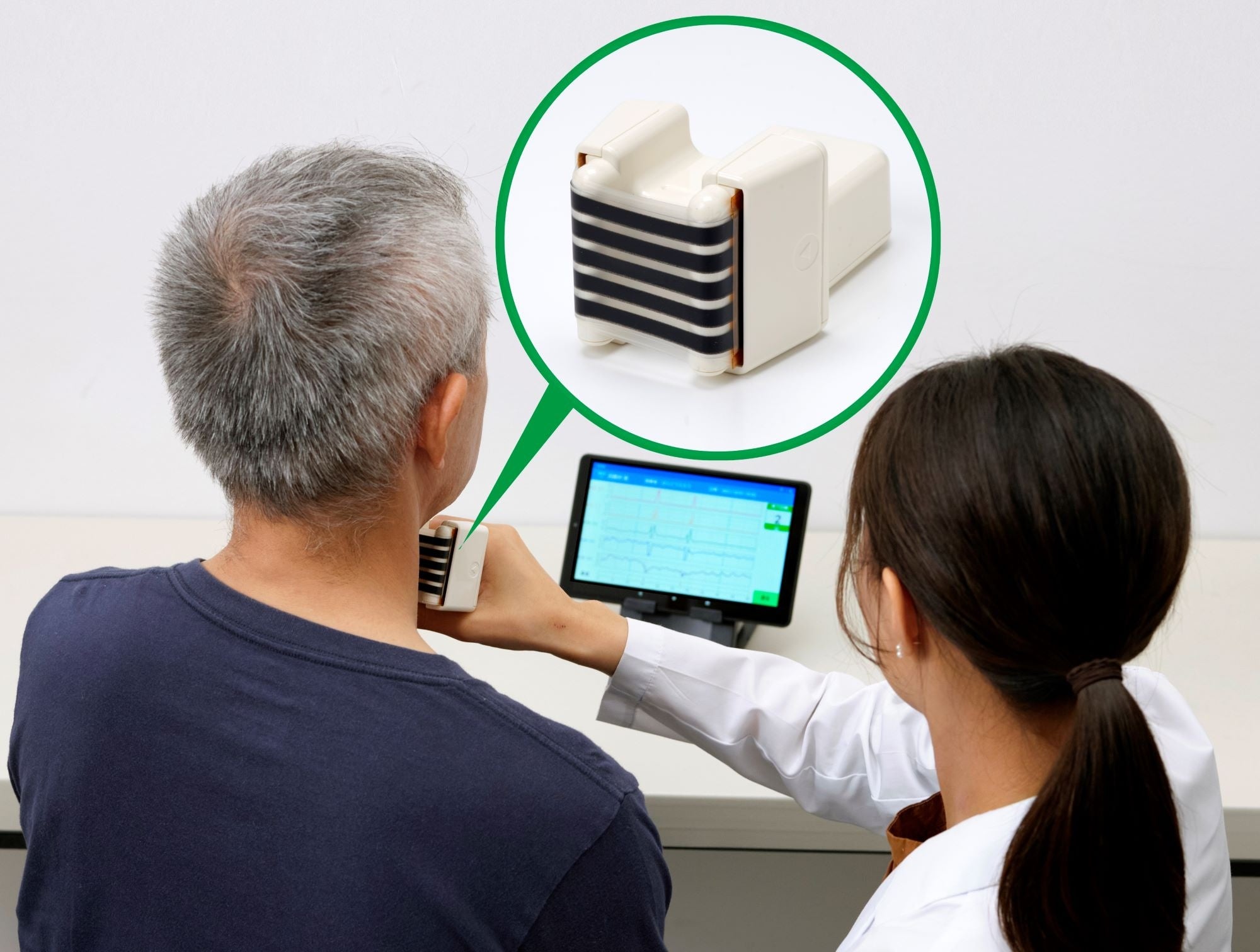 2021年10月に販売を開始したヘルスケア機器である嚥下運動モニタB4S™は、当社が開発した伸縮性ひずみセンサ「C-STRETCH®」を活用し、非侵襲的な手法を使い、今まで嚥下訓練の施術者にしか把握できなかった嚥下時の喉の動きを可視化し、被験者と共有することにより、嚥下訓練のモチベーション向上につながることが期待でき、言語聴覚士などリハビリに関わる方から高い評価をいただいています。